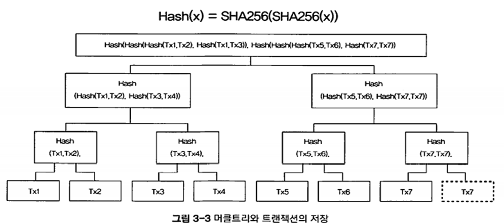 비트코인은 모든 트랜잭션, 즉 거래에 관한 하나의 해시값을 저장하기 위해 머클 트리를 사용하는데요.