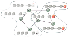위 그림은 노드 A와 F가 동시에 해시 퍼즐 해결에 성공한 후 브로드캐스팅 하고 있는 모습을 보여줍니다. 노드 A와 F는 서로의 존재를 모르므로 서로가 동시에 블록 생성에 성공했다는 사실을 알 방법이 없습니다. 이러한 사정은 다른 노드도 마찬가지여서 B와 C는 A가 블록 만들기에 성공했다는 사실만 인지할 뿐 노드 F에 대해서는 그 존재 사실도 모릅니다. 이는 노드 D와 E도 마찬가지입니다. 이런 경우 블록체인 네트워크에는 순간적으로 하나 이상의 서로 다른 진실이 존재합니다.