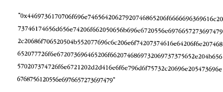 2018년 4월 23일 이더리움의 5492770번 블록에 중국으로부터 트랜잭션 하나가 기록된다.. 위의 숫자들이 나열되어 있었는데 이는 해석하자면 아래 그림의 문장으로 해석된다. 이 글은 북경대 여학생 유에신이 20년 전 성폭력 사건에 대해 청원을 낸 후 학교로부터 비합리적인 처사에 항의하는 메시지였다. 이 글의 긍정적인 측면은 이 글이 진실이라면 영원히 기록되어 없어지지 않지만 사실여부를 떠나 개인정보를 함부로 노출할 수 있는 위험과 함께 ‘‘잊힐 권리’가 박탈당하는 것은 누가 정당화할 수 있는지가 의문입니다.