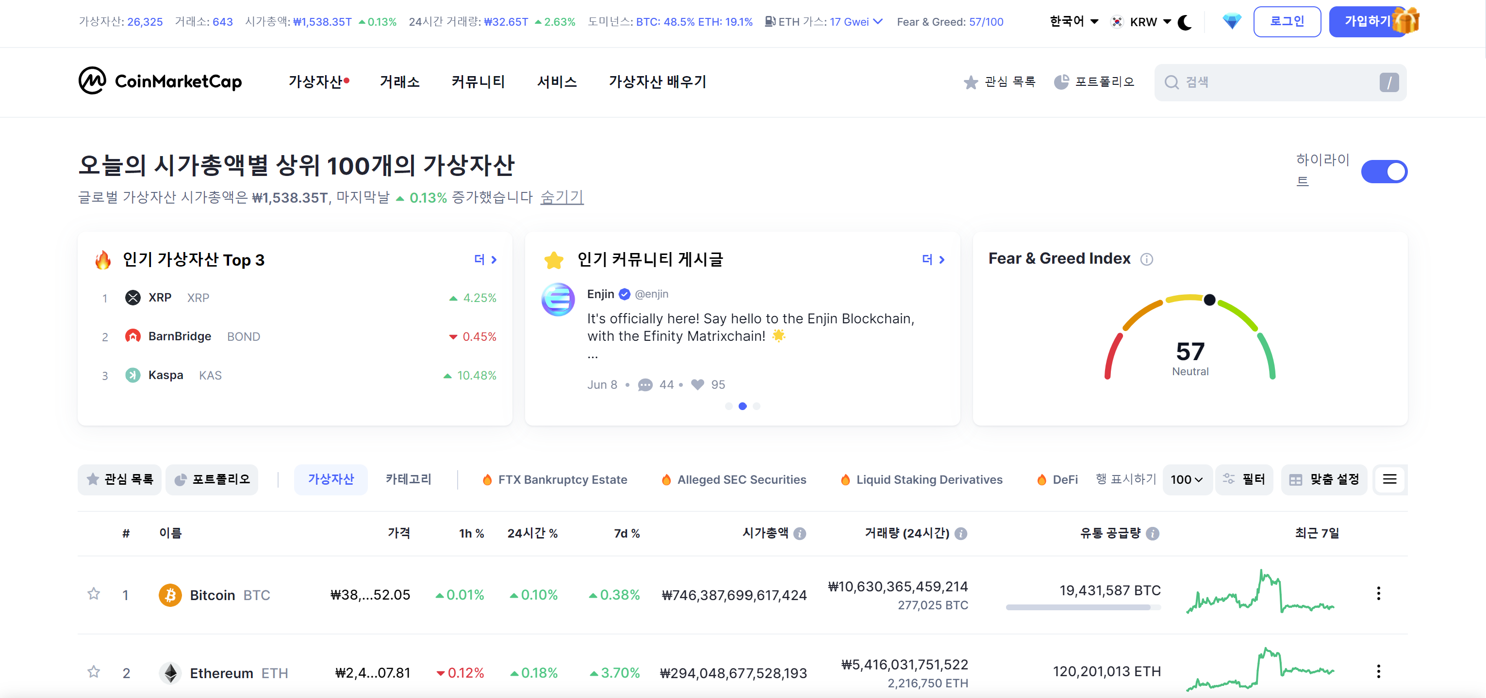 1. 코인마켓캡 홈페이지