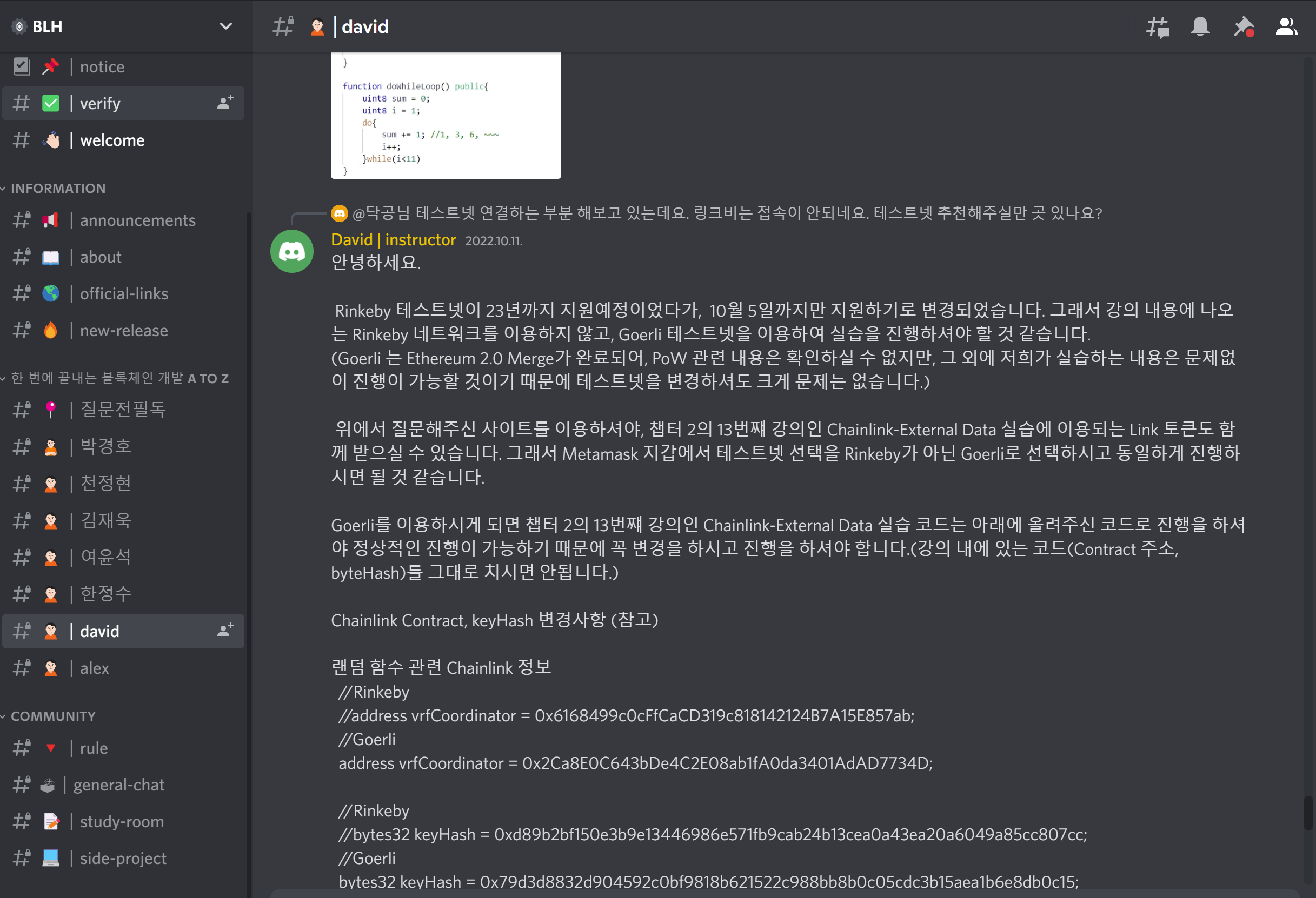 3. 디스코드 커뮤니티 시설을 기반으로 강사님들이 Q&A를 잘해주시고 활발하게 운영.