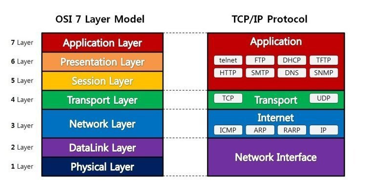 - 네트워크 프로토콜이 통신하는 구조를 7 계층으로 분리해서 각 계층 간의 상호 동작하는 방식을 표준화한 개념.