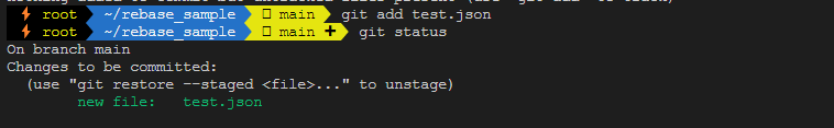 깃 스테이지에 올라간 파일은  new file : test.json의 형태로 올라가게 되고, 이는 git repository에 올라갈 준비가 되었다.