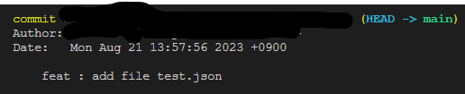맨 아래에는 feat : add file test.json 이 자신이 기록한 커밋메시지가 남게 된다.